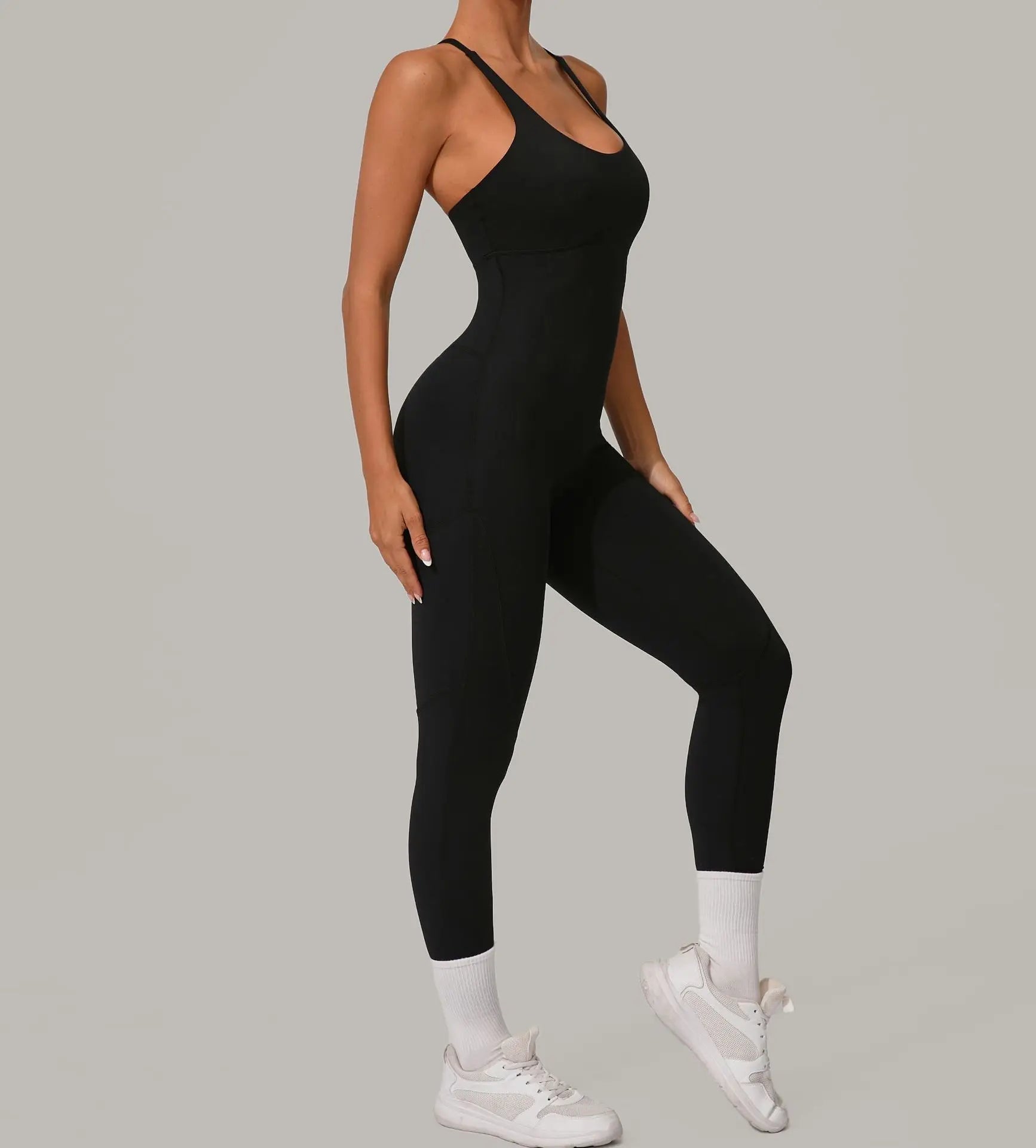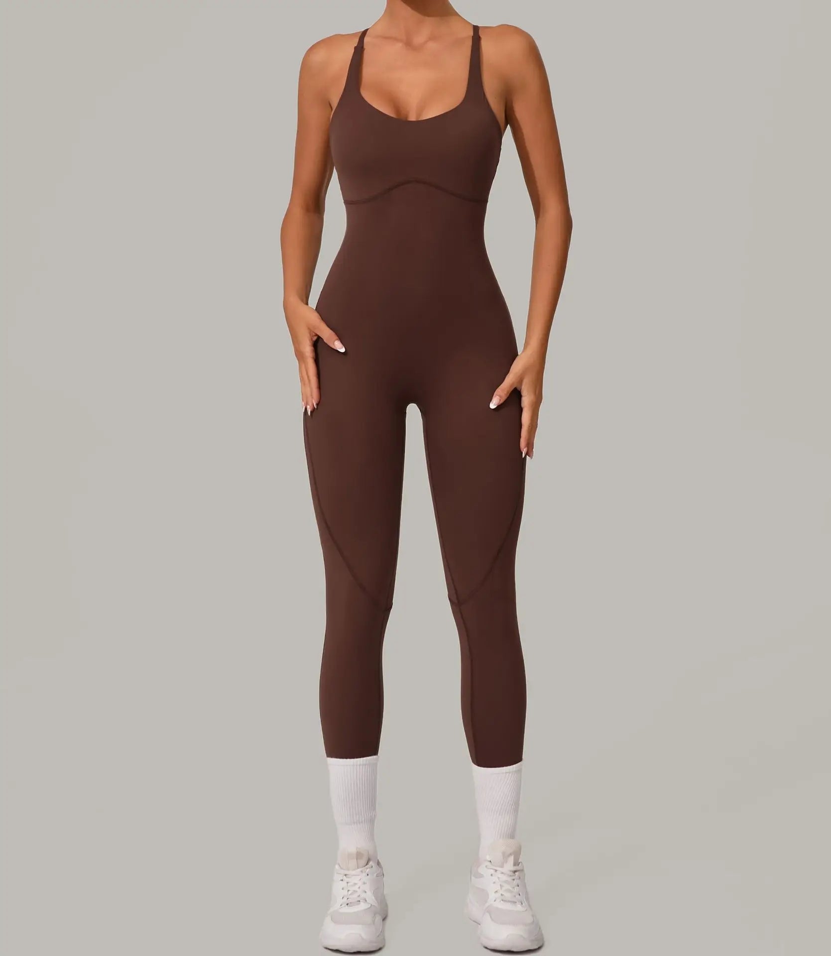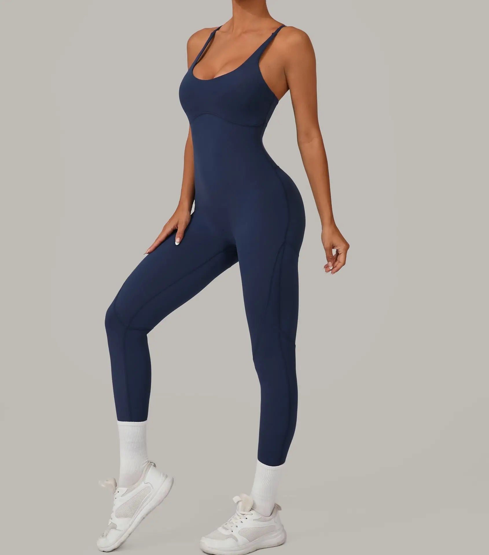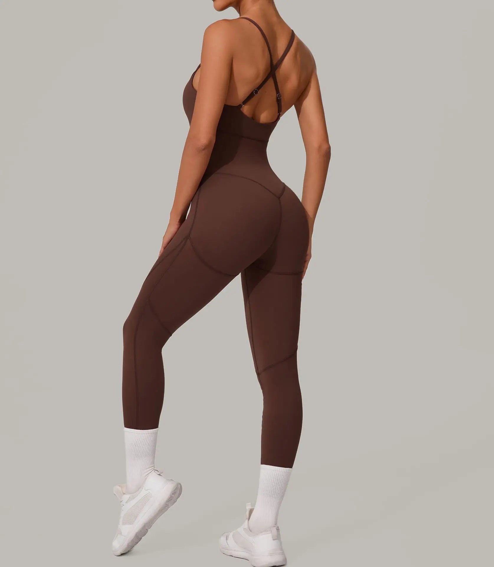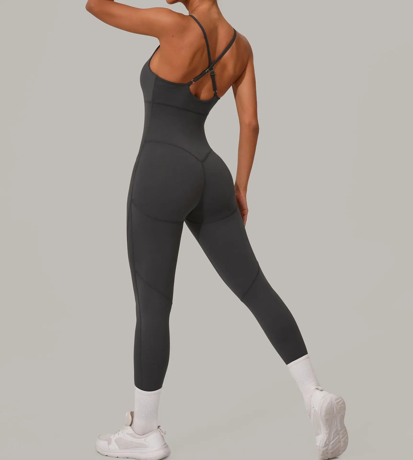 אוברול חלק בגזרה מחטבת במיוחד, עשוי מבד ניילון וספנדקס איכותי שמרגיש כמו עור שני. מעניק מראה נשי, אלגנטי ואלסטי שנשאר במקום גם באימון אינטנסיבי. עם גב פתוח ורצועות דקות לסטייל מחמיא ונוח, מתאים גם ליום ספורטיבי וגם למראה קז׳ואל שיק.